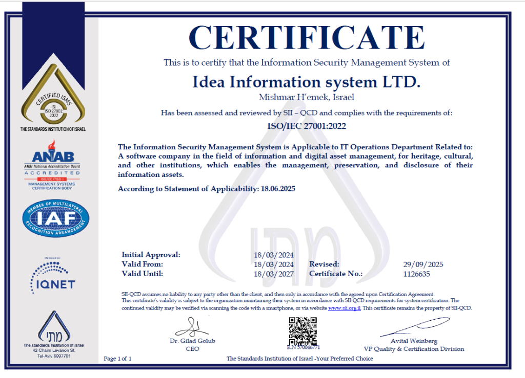 Conformity with ISO/IEC 27001 means that an organization or business has put in place a system to manage risks related to the security of data owned or handled by the company, and that this system respects all the best practices and principles enshrined in this International Standard.